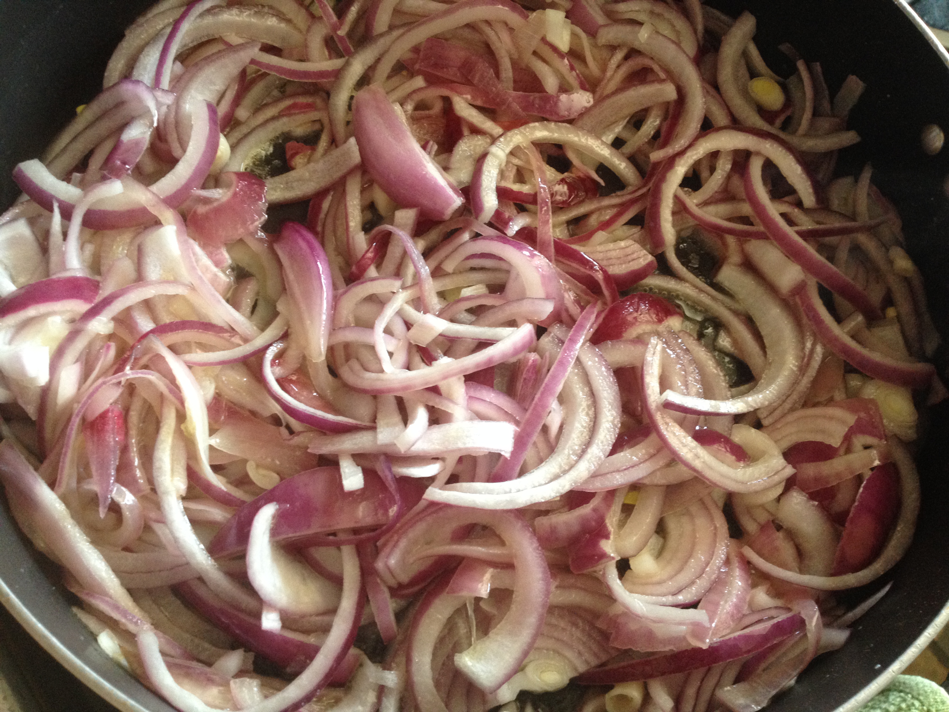 3 medium red onions, cut into half moons