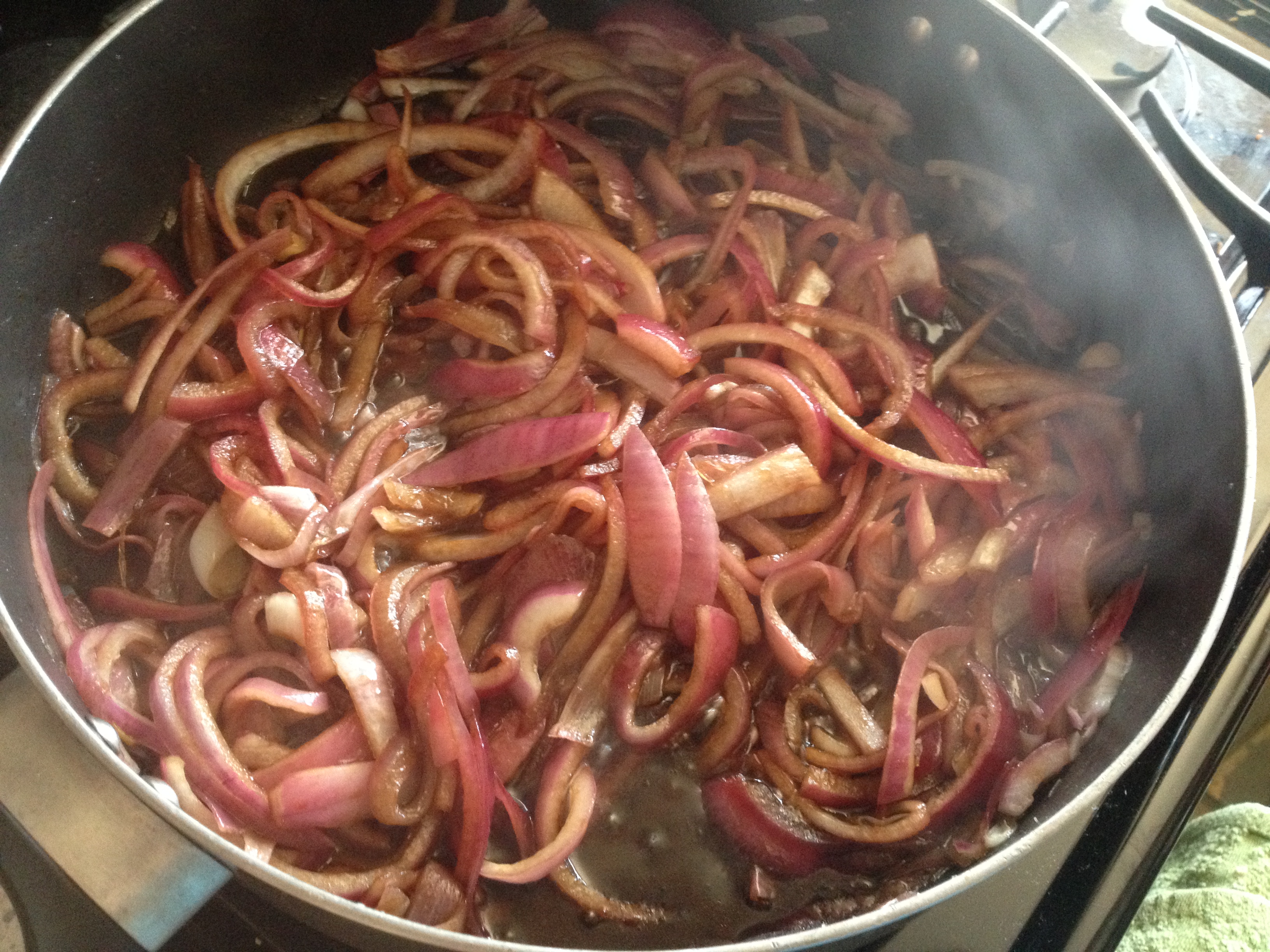 1/2 C balsamic vinegar (original recipe called for 1/4 C but I was distracted by my kids and poured in 1/2 C, which worked out great, you just have to let the onions cook down a bit longer)