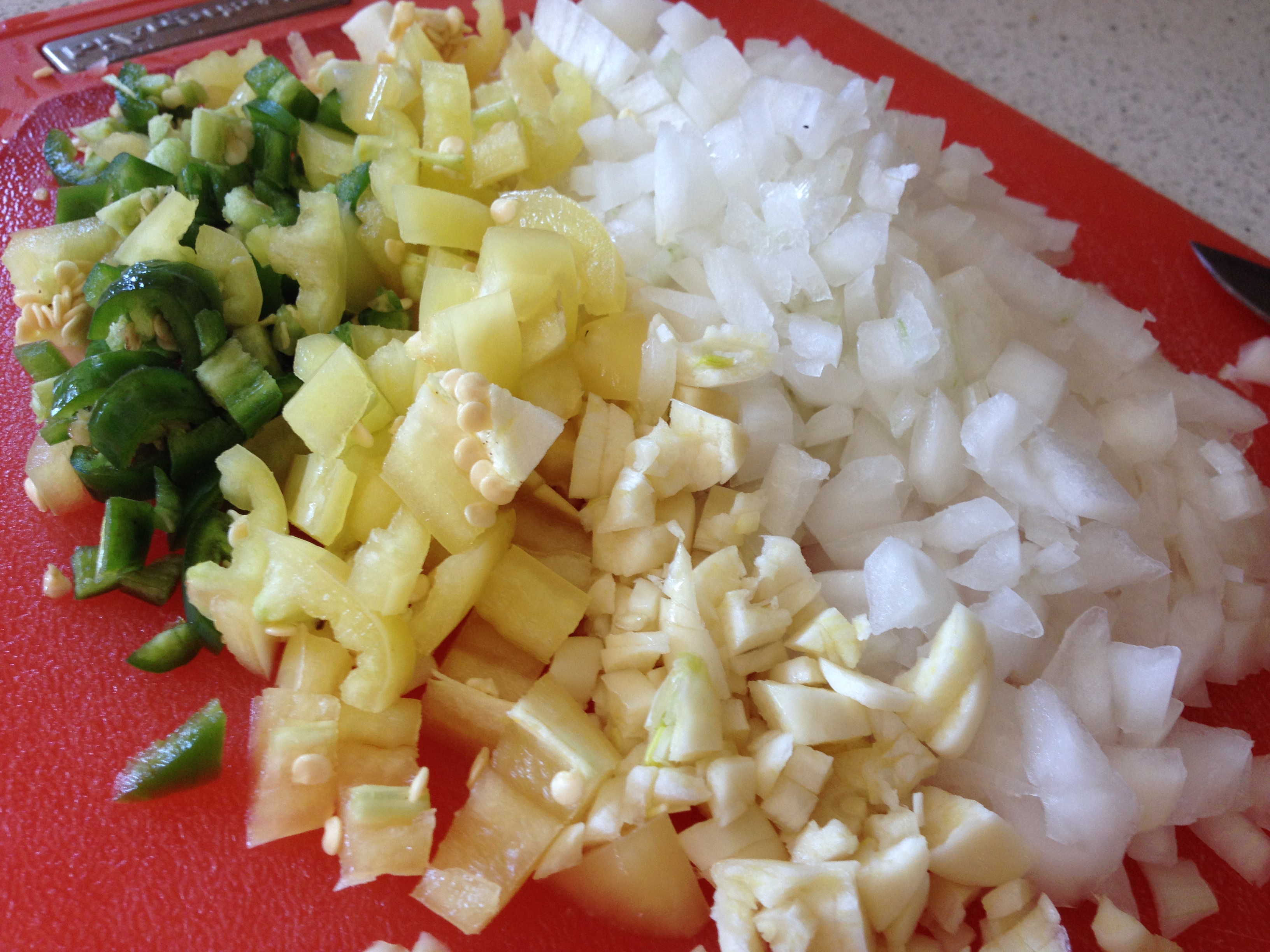 If you don’t have yellow peppers or serranos, just add more jalapenos. If you don’t have white onion, red onion should work just as well.